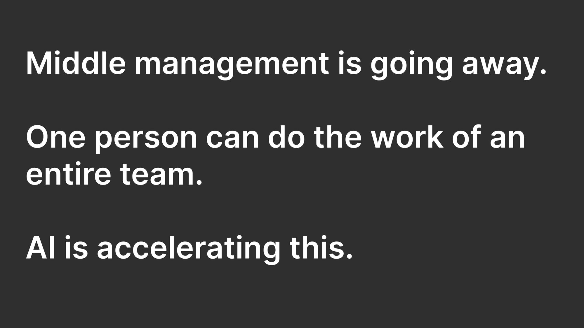 Since Elon's downsizing trend, many middle managers have returned to individual contributor roles. Recruiting and hiring used to be a core task of technology managers. With a trend toward smaller teams, there's less recruiting work. Improvements in communication enable executives to talk directly to employees instead of relying on managers.